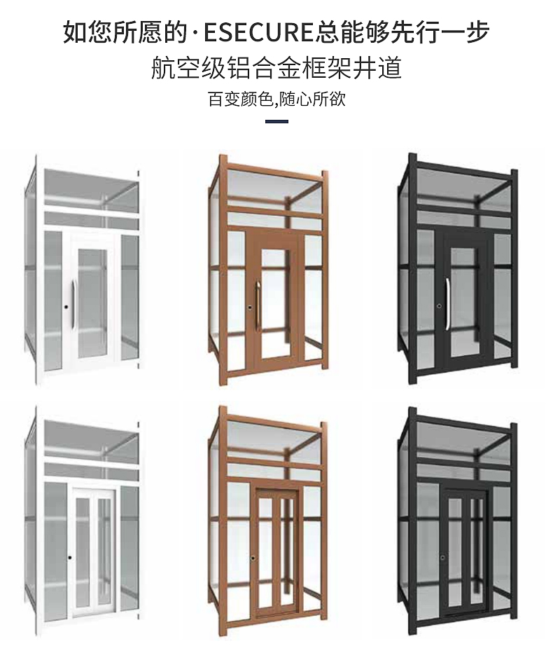 1:白色鋁合金框架井道,白色手動門